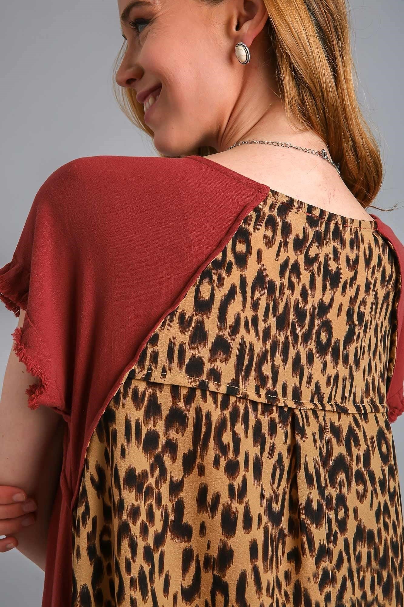 Umgee Red Brown Dress with Animal Print Back